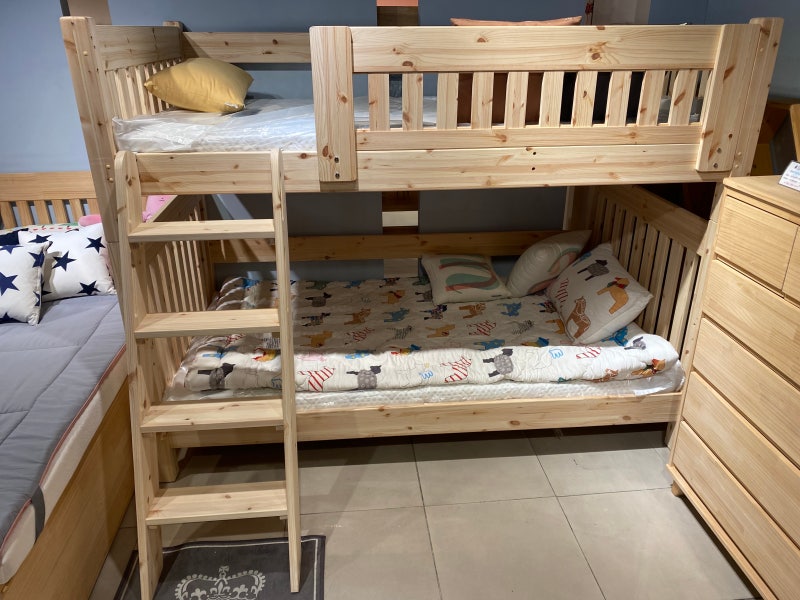 분리형 2층 침대이기 때문에 분리해서 사용할 때 심플한 디자인의 슈퍼 싱글 침대를 2쌍으로 활용할 수 있고 매트리스만 바꿔가며 사용한다면 장기적으로 10년 이상 사용할 수 있는 효율성이 매우 좋은 2층 침대입니다.